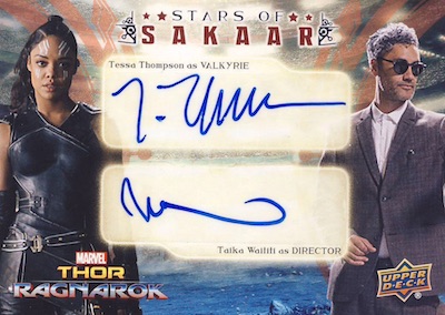 Following the recent release of Thor Ragnarok into theaters, Upper Deck has release 2017 Thor Ragnarok as a collectible trading card product. Fans will be happy to see autographs of several actors included in the product, most notably Chris Hemsworth as Thor. Additionally there are multiple relic sets that offer fans pieces of costumes worn on set. Fans should also look for the Dyson Rip Card included in every box that could contain a rare autographed card, should the buyer chose to rip it open. This is a more expansive checklist than your typical entertainment entry and fans will be happy to get there hands on it.