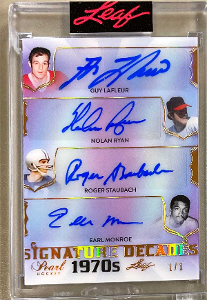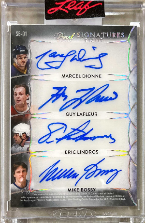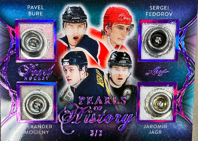 2020-21 Leaf Pearl Hockey is a high-end release that is characterised by autographs and relics of some of the very best players in history. While the set is primarily a hockey release, there are several names from other sports included, as well as an impressive list of cut signatures to collect. The set takes it’s name from the pieces of Pearls that are embedded in every base card, ensuring that even the base set holds value. Notable sets include the Signature Sixteen booklets, which offer 16 autographs each, and the Letter or Lace relics which offer large relic pieces, be they full sized jersey letters or pieces of jersey ties. A special “Black Box” was released as an extremely limited special and offered 1 card serial numbered 1/1 in every box. A full breakdown of the release can be found at Breakninja.com.
