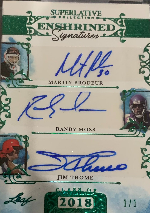 Superlative Enshrined Signatures Emerald HoloFoil Martin Brodeur, Randy Moss, Jim Thome
