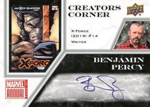 2020-21 UD Marvel Annual is an entertainment card checklist that looks back on the last year of Marvel comics. The release offers a mix of base, variants, and insets. Available hits include sketch cards and autographs from Marvel creators. The Marvel Annual brand is released both as a physical release, and an ePack release, where it is often used for pack wars and for achievement cards. A full breakdown can be found at Breakninja.com.