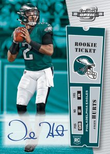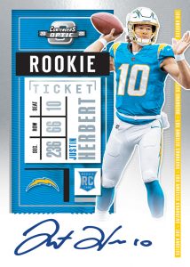 2020 Panini Contenders Optic Football is a mid-range release that takes the ever popular Rookie Ticket style and adds a shiny finish to them. The release focuses primarily on rookies, but does offer some autographs from veteran players as well. The Rookie Ticket autos appear to all be hard-signed, which will add to overall value. A full team team-by-team breakdown can be found at Breakninja.com.