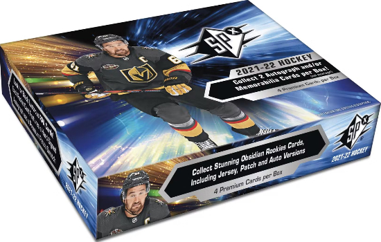 2021-22 SPx Hockey is an annual favourite in the hobby. The brand is advertised as a “premium product at a bargain price.” The release offers fans a total of 2 hits per hobby box, which is down slightly from the 2-3 hits from the 2020-21 version. Hits can include autographs, auto relics, or relic cards. For the past several years the SPx release has also included UD Black cards, which used to be a standalone release. Hobby boxes offer 4 cards each, divided over 4 packs. A full team-by-team breakdown can be found at Breakninja.com.