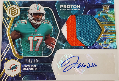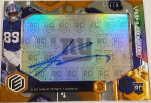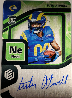 2021 Panini Elements Football is a mid-range set that is themed around the periodic table of elements. Printed on a metallic card stock these cards are an attractive and flashy offering for collectors. Hobby boxes offer 2 signed cards each, including at least 1 hard-signed auto. In addition to the signed cards, there are relics, auto relics, and a limited amount of insert cards. A full team-by-team breakdown can be found at Breakninja.com.