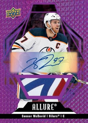 2022-23 Upper Deck Allure is a hockey card release that has become an annual favorite, both as a physical release and on ePack. The brand falls on the lower-end of the scale, but still offers a mix of base, parallels, autos, auto-relics, and inserts. The design is closely comparable to that of O-Pee-Chee Platinum, notably with the use of the Golden Treasures 1/1 parallels. Collectors can expect to find 1 auto or auto relic in every hobby box, and every pack promises both an insert/hit and a parallel. A full team-by-team breakdown of the release can be found at Breakninja.com.