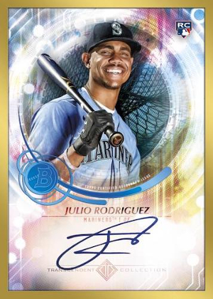 2022 Bowman Transcendent Collection Baseball is an ultra high-end release that offers no less than 34 signed cards per hobby box. Included in these autographs are a Cut Signature, and 3 other 1/1s. In addition to the signed cards there is a full set of Bowman Icons base cards in every box. With a price tag of about $23,000usd each, these are not boxes for the average collector. A total of 100 boxes are produced and each also includes an invitation to a VIP party. A full breakdown of the release can be found at Breakninja.com.