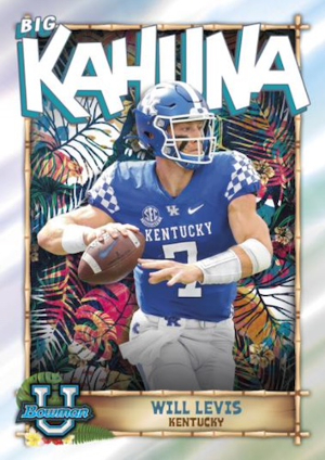 2022 Bowman University Chrome Football is a prospect based set that draws from the NCAA pool of players. The set is a rare option for collectors of Bowman branded releases, which are more associated with baseball rather than football. Hobby format boxes offer 2 signed cards each, as well as various inserts, base cards, and parallels. Box breakers can find a full name-by-name breakdown at Breakninja.com.