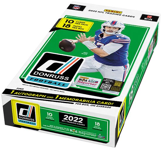 2022 Donruss NFL is a middle of the road product that offers a mix of base, parallels, autos, relics, and inserts. The checklist draws from all over the NFL and includes top name rookies, stars, and even legends. The set is the flagship of the Donruss brand, and like many mid-range Panini releases, features sticker autos on most, if not all of the autograph sets. Hobby format boxes offer 1 signed card and 1 relic each. A full team-by-team breakdown can be found at Breakninja.com.