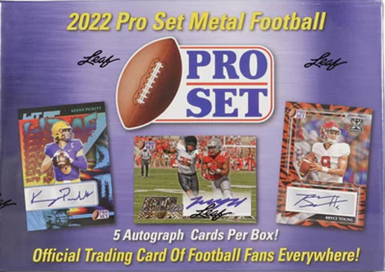 2022 Pro Set Metal is a second year release from Leaf that offers 6 signed cards in every hobby box and 10 autos in every Jumbo format box, which also offers a slabbed 1/1 pre-production proof. Autographs in the set are sticker signed, which is standard for Leaf/Pro Set releases. Collectors can find a variety of design options in the checklist, including Action Ink and the Lit Auto sets. A full player-by-player breakdown can be found at Breakninja.com.