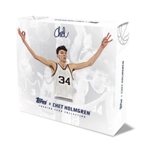 2022 Topps X Chet Holmgren Curated Basketball is the latest release in Topps’ player curated sets, that sees selected players design their own release. In this case NBA Prospect Chet Holmgren is the only player in the entire set, which features a base set, along with parallels, a SP set, and an autograph set. This set is exclusive to the Topps website and offers a total of 21 cards per box. A full breakdown of the set can be found at Breakninja.com.