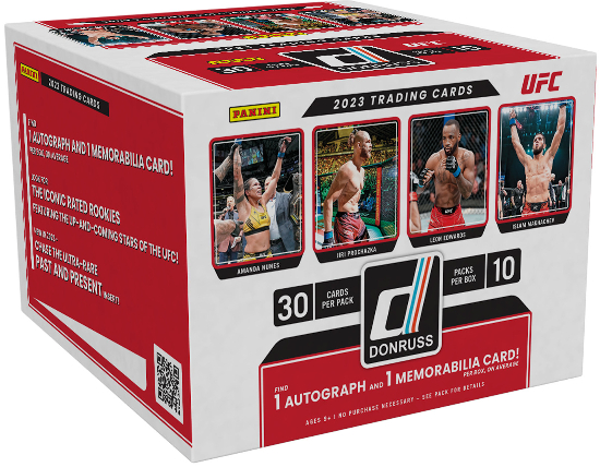 2023 Donruss UFC is an MMA release that acts as a fairly standard format release. The set offers base, parallels, autographs, relics, and inserts, with autographed cards appearing to be mostly sticker signed. The main draw for Donruss sets is the Rated Rookie cards, which includes a signed version. Hobby format boxes offer 1 signed card and 1 relic card each. A full breakdown of the release will be available on Breakninja.com at a later date.