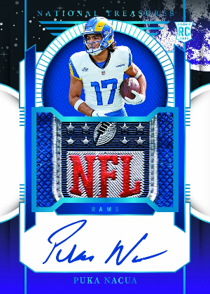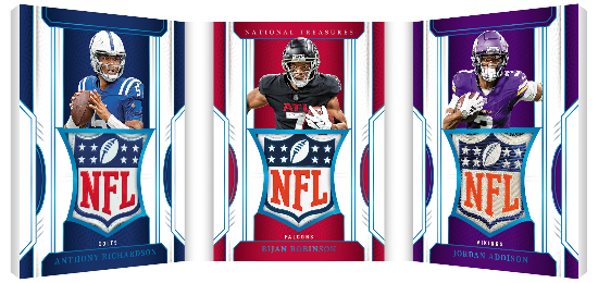 2023 Panini National Treasures Football is a premium release that offers a mix of base, parallels, autos, relics, and inserts, as well as updates from previous National Treasures releases. Many of the autographs included in the set are hard-signed, and include several top names such as CeeDee Lamb, Puka Nacua, and Anthony Richardson. There are also cards that feature multiple players, with some of the relic cards having as many as 24 players each. Hobby boxes offer 6 autos or relics each, as well as a parallel and a base or insert card. A full team-by-team breakdown can be found at Breakninja.com.