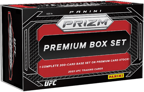 2023 Panini Prizm UFC Premium Box Set is an exclusive release that adds a limited version to the already released Prizm UFC set. This release offers collectors a full base set, each of which is serial numbered /99, as well as an autograph that is numbered /15 or less. While the base set is essentially a parallel to the main release, the signed cards should have strong value, offering names such as Brock Lesnar and Khabib Nurmagomedov. A full breakdown of the will be found at Breakninja.com.