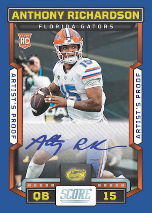2023 Score Football is an early pre-season release that marks the beginning of the new collecting year. The Score brand is traditionally a lower-end release, but the set manages to offer 4 autos in every hobby box regardless. In addition to the signed cards, which appear to all be sticker autos, the set includes a large base offering, several parallels, and a huge selection of inserts. Collectors can expect to find a total of 40 cards per pack, and a full team-by-team breakdown is available at Breakninja.com.