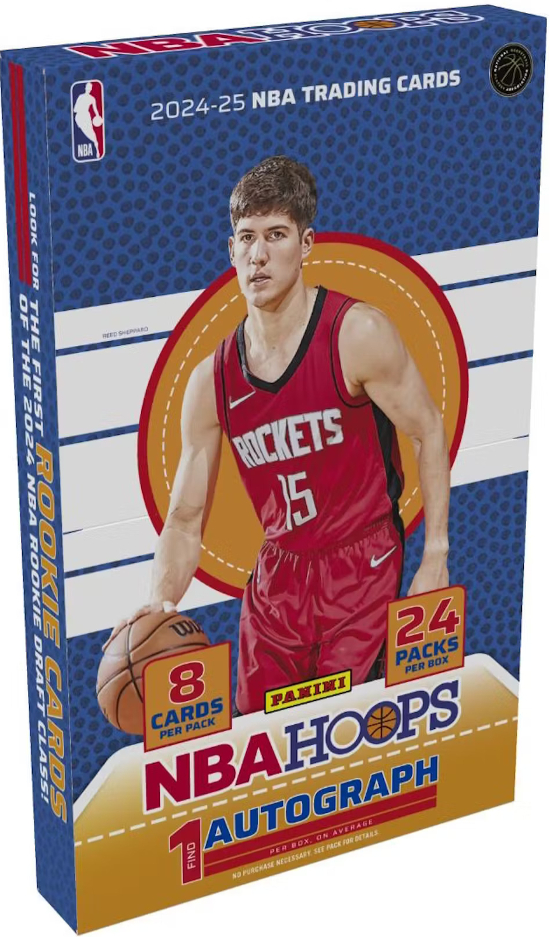 2024-25 Panini NBA Hoops is a simple set that includes a mix of base, parallels, autos, relics, and inserts. The base set includes 300 cards and a huge amount of parallels, while the autograph and relic sets are fairly straightforward and offer a good mix of rookie and star autos. The insert sets are varied and have a particular focus on the NBA Championship. Hobby format boxes offer a total of 1 signed card each and 1 insert or parallel in every pack. A full breakdown of the release can be found at Breakninja.com.