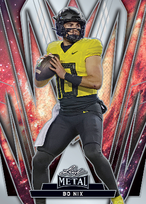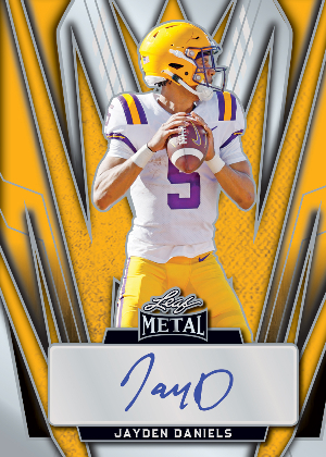 2024 Leaf Metal Football is an autograph heavy release that includes several top name players. The release is available in both hobby and jumbo format boxes, with the jumbo boxes guaranteeing a proof autograph in addition to the 9 regular autos. The checklist includes a variety of different card styles, including the Anime Nation and Graffiti Graphs set. There are also multi-player autos available for lucky collectors. Standard hobby boxes offer 5 signed cards each. A full name-by-name breakdown can be found at Breakninja.com.
