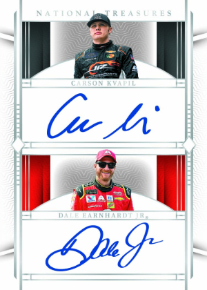 2024 Panini National Treasures Racing is a high-end NASCAR set that offers plenty of hard-signed autos and race-used relics. Relics include race-used firesutis, sheet metal, and tires, while the autographs include names such as Dale Earnhardt Jr, Tony Stewart, and Kyle Busch. There are also cut signatures that include Benny Parsons, Ned Jarrett, and David Pearson. Hobby format boxes offer 8 autos or relics each, as well as 2 base or inserts. A full breakdown of the release will be available at Breakninja.com.