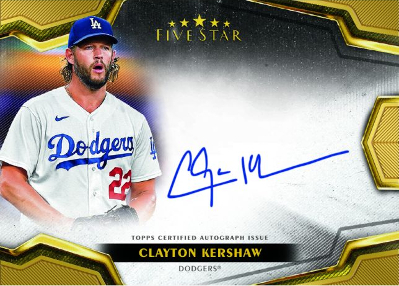 2024 Topps Five Star Baseball is a premium release that offers only signed cards, with most autos being on-card. Hobby boxes are limited to 2 cards each and include several top name players, such as Elly De La Cruz, Sandy Koufax, and Aaron Judge. In addition to the standard autograph cards, several sets also offer relic swatches. There are also a series of cut signatures that feature past baseball legends and select celebrities. Collectors can find a full team-by-team breakdown of the entire release at Breakninja.com.
