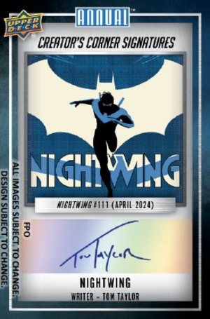 2024 Upper Deck DC Annual is a debut release that sees DC replace Marvel as Upper Deck’s comic wing. This occurs as Marvel’s license moves to Topps/Fanatics, leaving the door open for DC to fill the gap. The set is similar in format, with base, parallels, inserts, sketches, and artist autos all being offered. Hobby boxes offer 6 base Comic Cover variants, 4 Silver Sparkle parallels, 1 TITANS insert, and 1 Knight Terror insert each. A full breakdown of the release can be found at Breakninja.com.