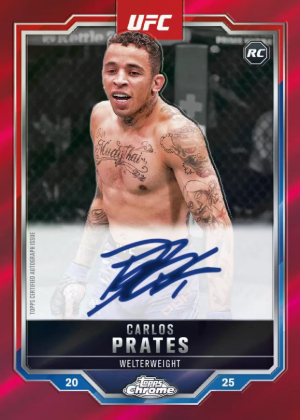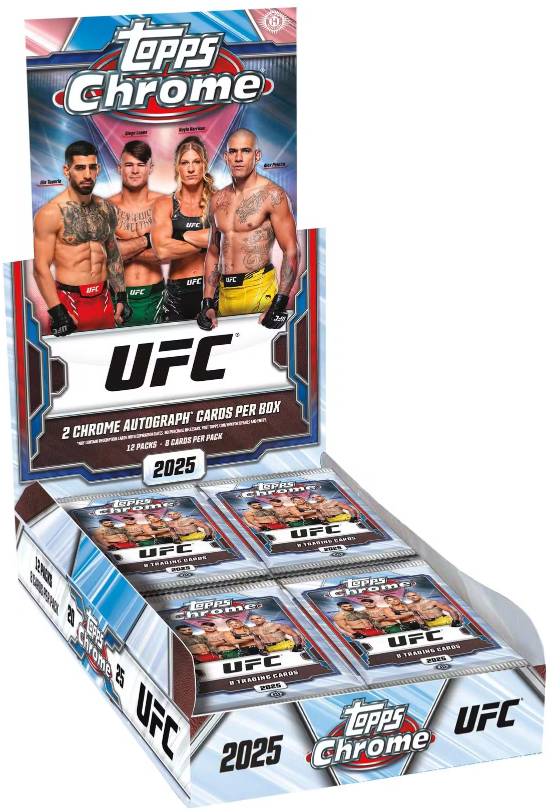 2025 Topps Chrome UFC is a MMA release that offers flashy chromatic cards and hard-signed signatures. The set includes a base set that is accompanied by several parallels, including some that are exclusive to specific box formats. There is also a large selection of autographs to chase, including sets that are dedicated to rookies, veterans, and legends. There are also several insert sets that round out the release, including several that are extremely short printed, or unavailable in the hobby box format. Hobby boxes offer 2 autos each, and a full breakdown of the entire set will be available at Breakninja.com.